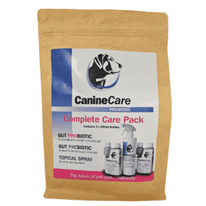 CanineCare Probiotic is a proprietory blend of GRAS listed (generally recognized as safe) beneficial microbes. They work together in a number of ways, to outcompete the pathogens that cause bacterial and fungal skin conditions on your dog. Some of the processes at work include… – Occupation or Colonisation…the good bugs occupy the space so pathogens have no where to go. -Predation…the good bugs eating the bad ones, this is a normal life cycle for microbes, as we increase the beneficial microbes it happens faster than it normally would. -Quorum Sensing…the numbers game, when enough beneficial microbes are introduced the pathogenic microbes response is to switch off and admit defeat. Basically the quorum has swung the other way.