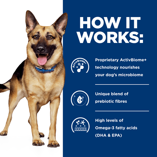 Hill’s Prescription Diet Gastrointestinal Biome is a high-fibre wet dog food with a blend of prebiotics clinically shown to help firm loose stool in 24 hours and reduce risk of recurrence. It is specially formulated to promote healthy stool and support overall digestive health. This wet dog food is made with chicken and has a mouthwatering taste that your dog will love. It was developed specifically for GI care by Hill’s nutritionists and veterinarians. This food also promotes a urinary environment that reduces the risk of developing struvite and calcium oxalate crystals. Please consult your veterinarian for further information on how Hill’s Prescription Diet foods can help your dog continue to enjoy a happy and active life.