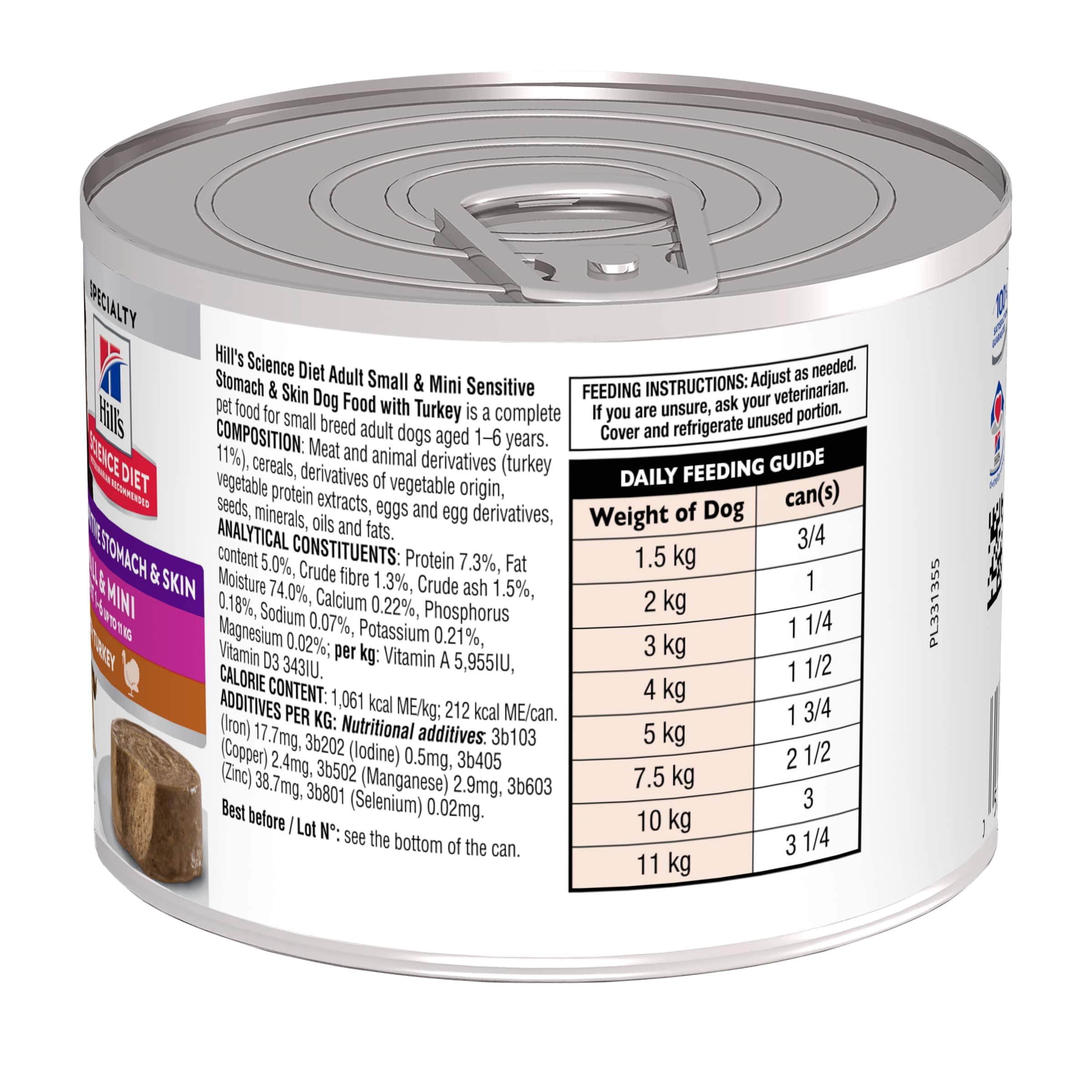 Hill’s Science Diet Sensitive Stomach & Skin Small & Mini Adult dog food is a complete pet food for small breed adult dogs 1–6 years old. It is highly digestible food and supports digestive health with prebiotic fibre, promoting a lustrous coat.
