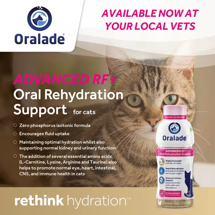 - 8/10 cat’s prefer Oralade RF+ to water alone