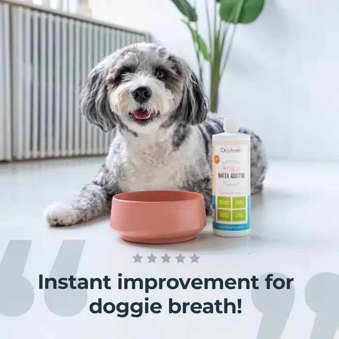 I’ve been using Oxyfresh ever since Pepper was a pup nearly 5 years ago. One capful every time I fill his water bowl. He has never had bad breath. He had a descaling about a year ago and yesterday he got a very good report from the vet on his teeth.