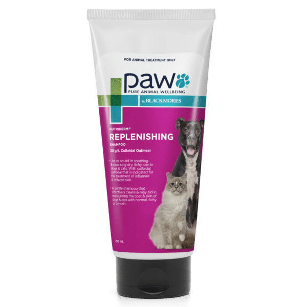 pH balanced and veterinary recommended for pets itchy, dry and normal skin. PAW by Blackmores NutriDerm Replenishing Shampoo provides advanced pawDerm® technology including: