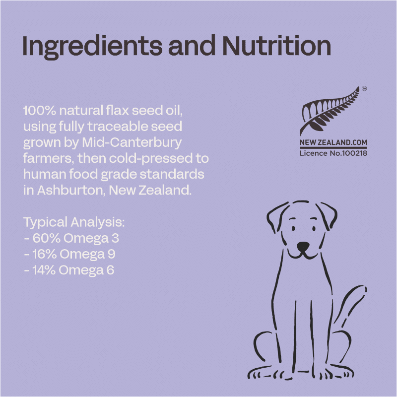 Fourflax Omega 3 (Previously Provida Flax Seed Oil for Dogs) is the perfect everyday supplement to support your dog’s overall health & wellbeing.