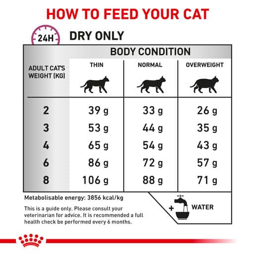 Optimal results are expected after 6 to 8 weeks of feeding. Mobility diet may be continued for the cat’s lifetime. It is recommended that a health check be performed every 6 months.