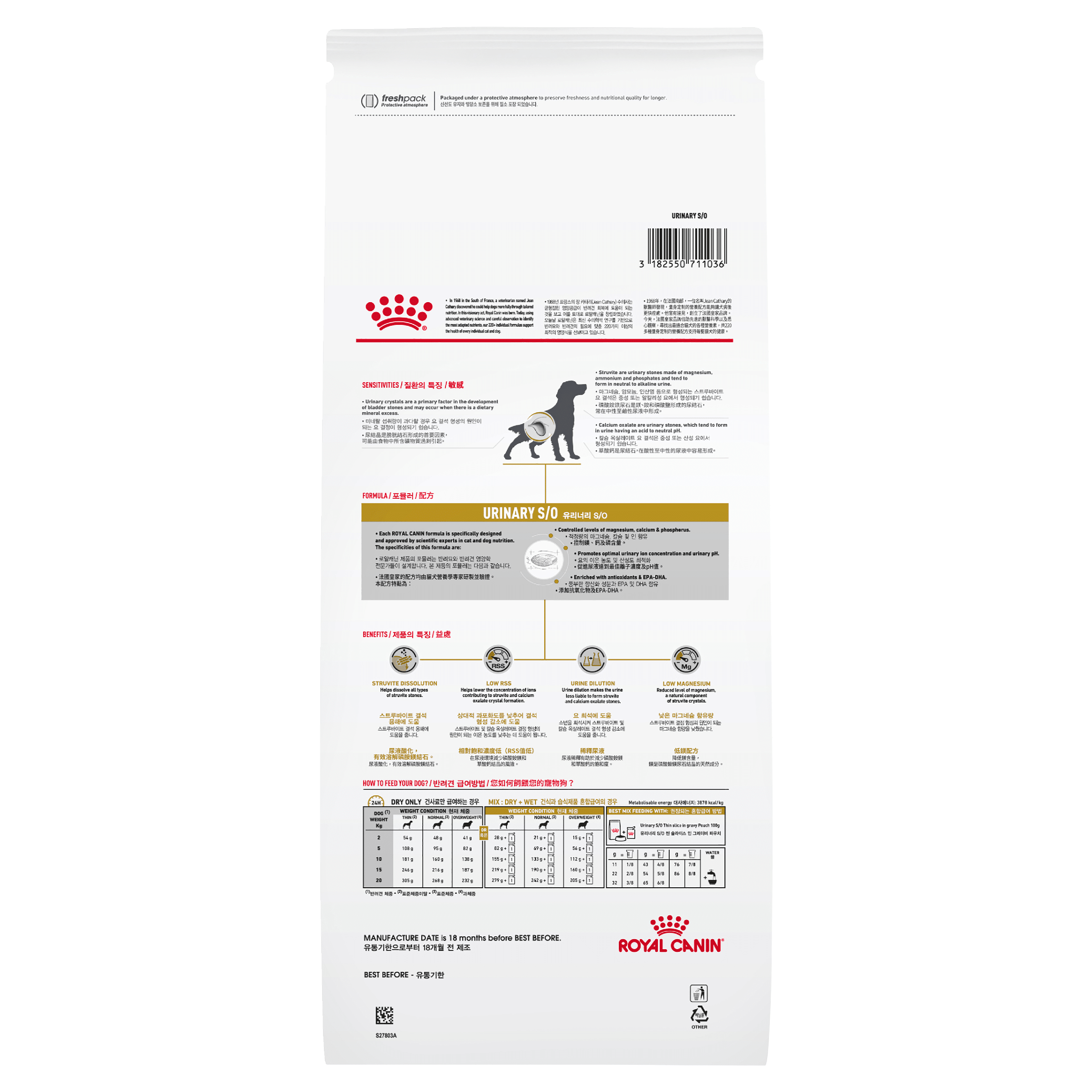 Urinary S/O is specifically formulated for the nutritional management of adult dogs with urinary stones (struvite urolithiasis) and to help prevent their recurrence. This is achieved through urine acidifying properties and controlled levels of magnesium.