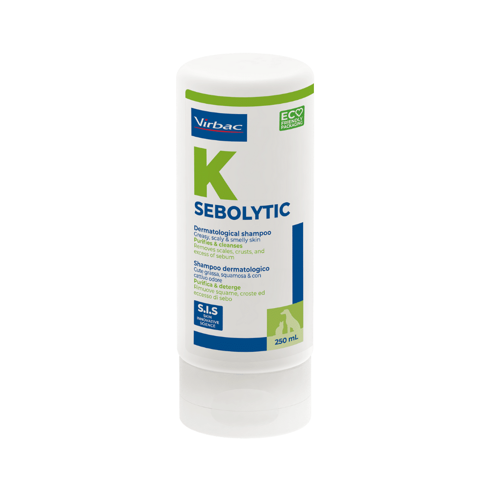 - Sebolytic shampoo removes scales, crusts and excessive oil on the skin surface of dogs and cats. It helps regulate sebum production and skin odour
